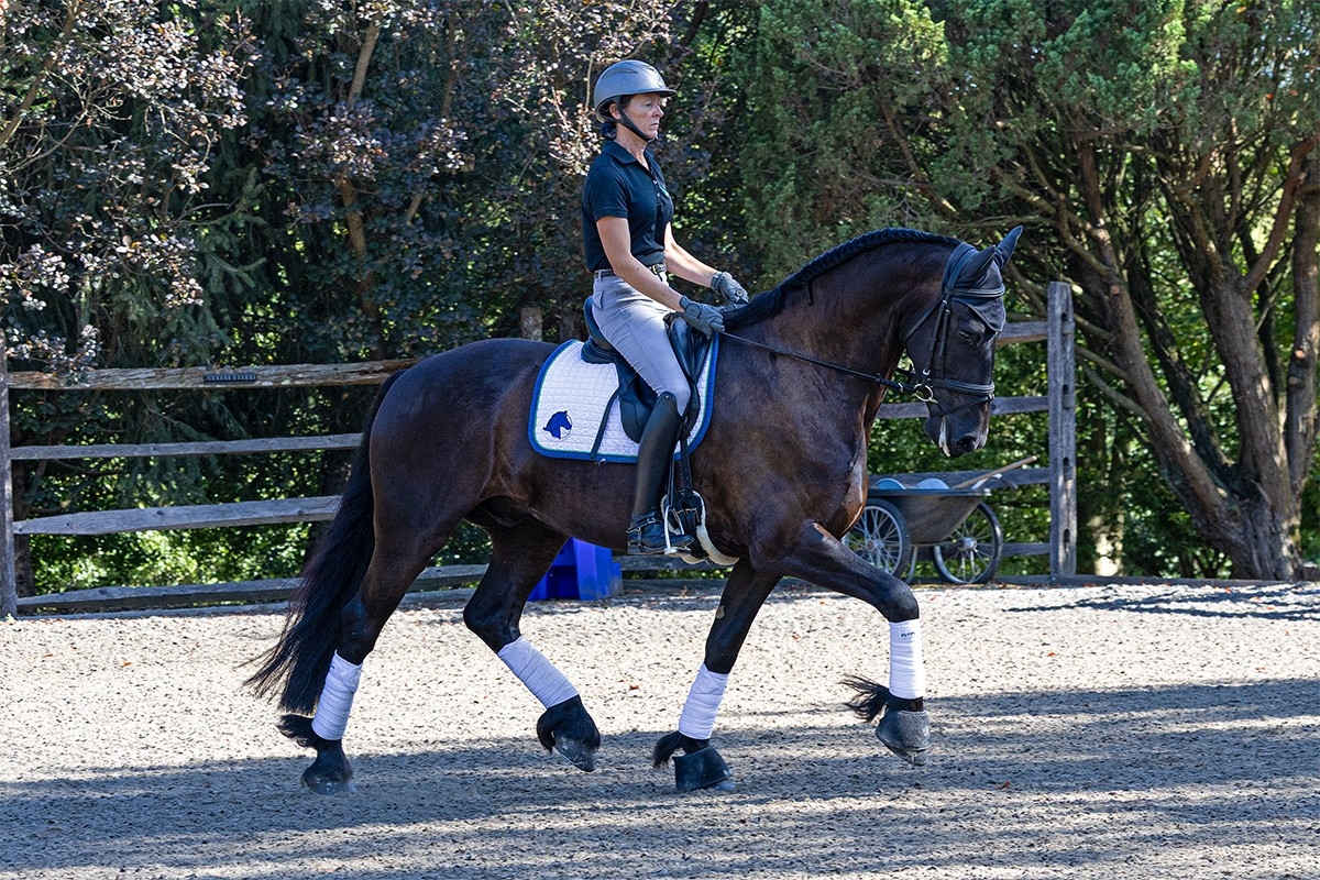 Sire Tjalbert 460 earned good scores under saddle and was victorious at the Friesian Indoor Dressage Championships in the Netherlands prior to being imported to the States. Among his offspring are numerous Star and Crown mares, two offspring with the Sport predicate, as well as four sons that were selected for the KFPS Stallion Show. Tjalbert offspring have won keuring championships in both the United States and Europe and are showing aptitude for dressage as well as harness.