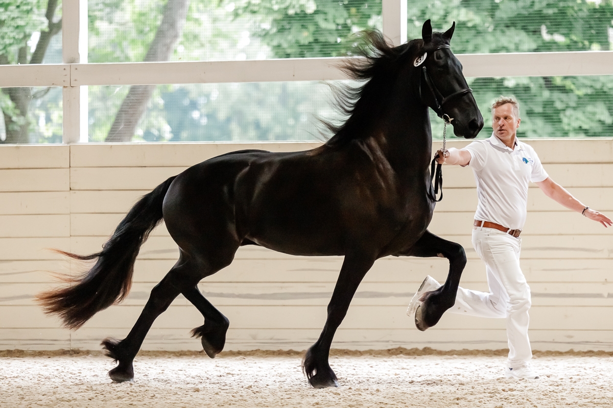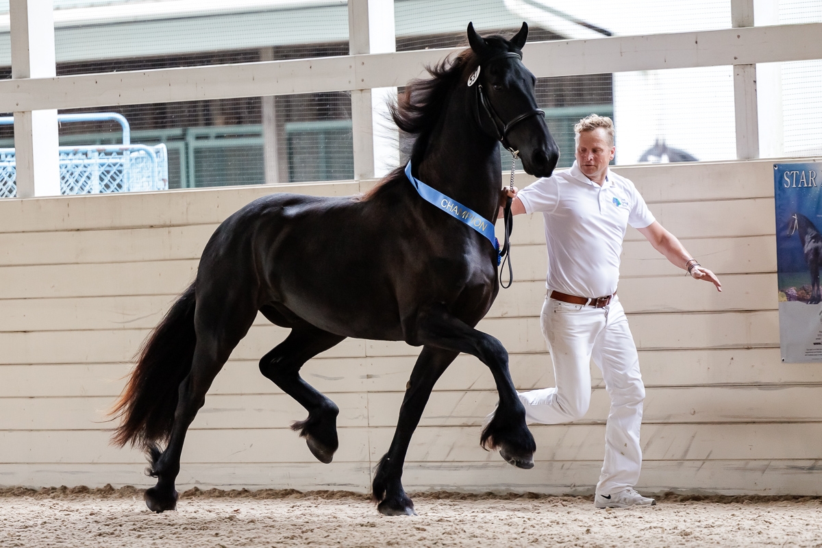 Dam Yfke fan Fjildsicht is a celebrated member of the ISF breeding program. Sired by Harmen 424, Sport and out of Edou fan Fjildsicht, Star, by Nanno 372, Yfke was named the North American IBOP Champion in 2013 with an overall score of 85%! In 2015, she was decorated with the prestigious Model predicate after being named Champion Mare and Champion of the Day at her FHANA keuring. Yfke has also posted scores up to 82% in-hand at USDF breed shows, including winning the Four-Year-Old and Older Broodmare Class at Dressage at Devon against all breeds in 2019. Yfke passes on her impressive type and elastic gaits to all of her offspring.