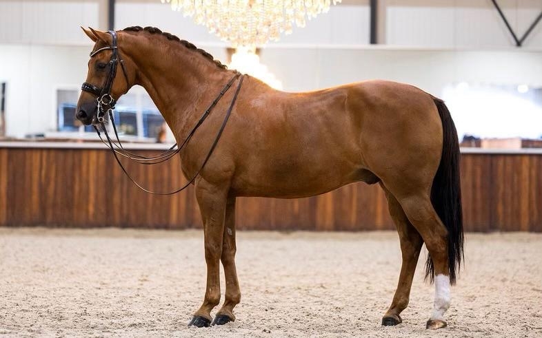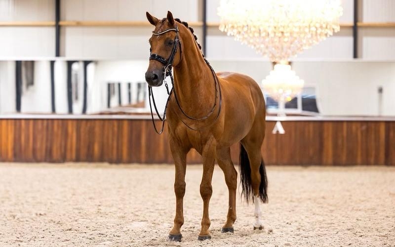 “Body” is a stunning chestnut Selle Francais gelding with fabulous breeding and quality gaits. He has shown I-2 in France and is schooling the Grand Prix movements. While he knows all the tricks, Body would be best suited for a JR/YR or as a small tour horse. He would make a perfect mount for NAYC! He has a lot of quality in a smaller package. Both his sire, Olivi, and his grandsire, Jazz, are highly regarded and have definitely passed on their desirable qualities to Body. He is fun to ride and highlights include his easy connection to the bridle and straightforward flying changes.