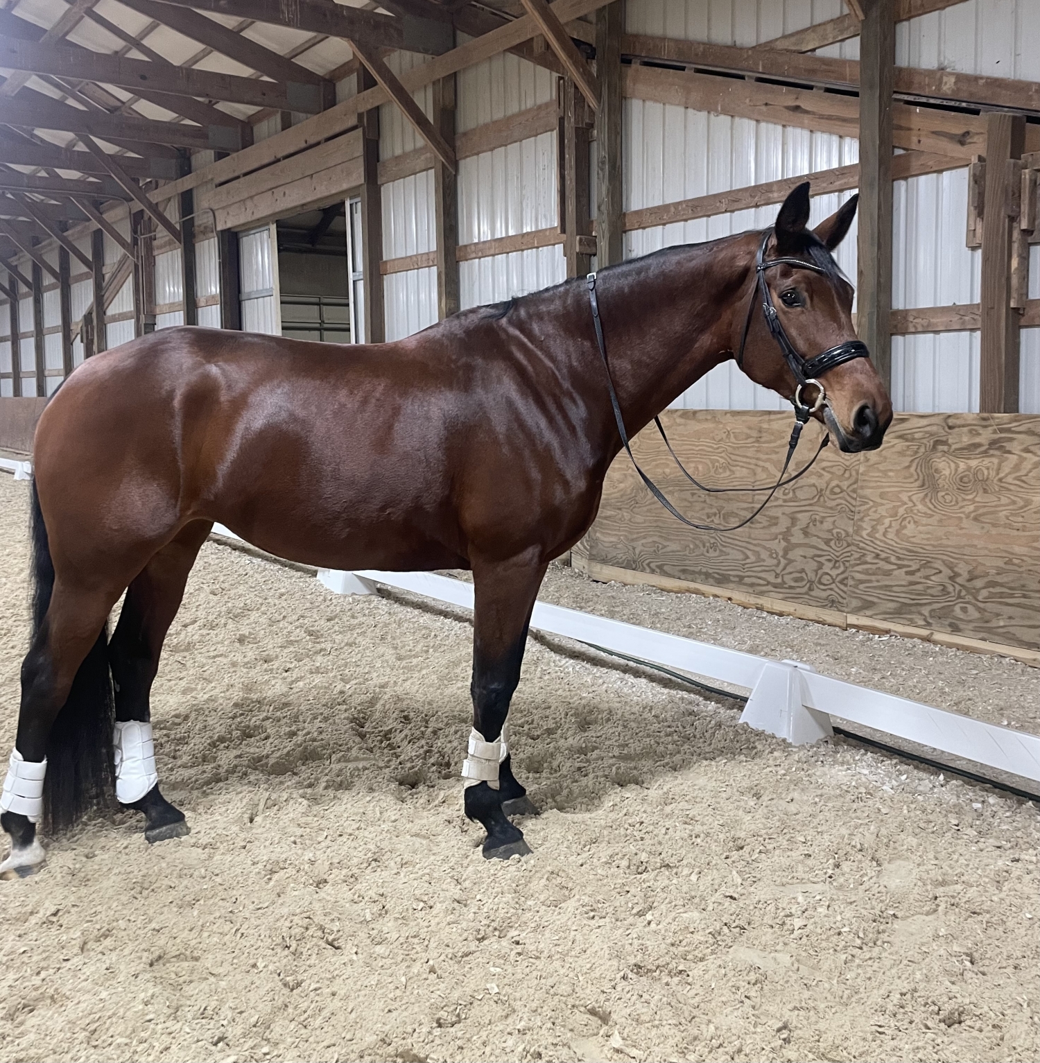 Ella is an exciting young mare by Furstenball out of an Idocus mare. She has supermodel good looks, the sweetest disposition with beautiful gaits and super rideability. Currently schooling third level with a nice expressive change, elastic gaits with an excellent hindleg. She is calm, confident and easy to ride and work with, yet sensitive enough to the aids to excel in the FEI ring. Sound, healthy and an easy keeper. Great with farrier, vet, trailering,. Hacks out alone, An amazing opportunity for an amateur or young rider to enjoy bringing up through the levels. Would also be a great prospect for a professional to develop.